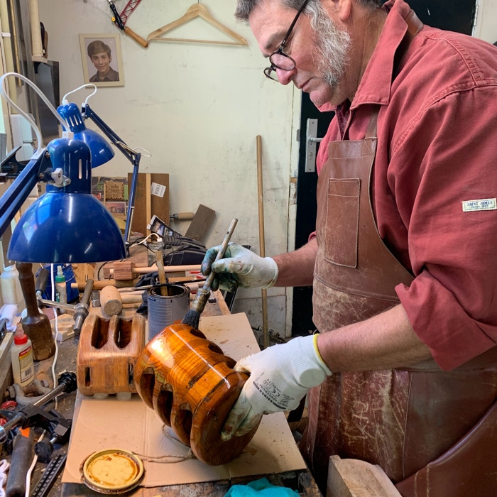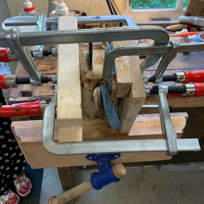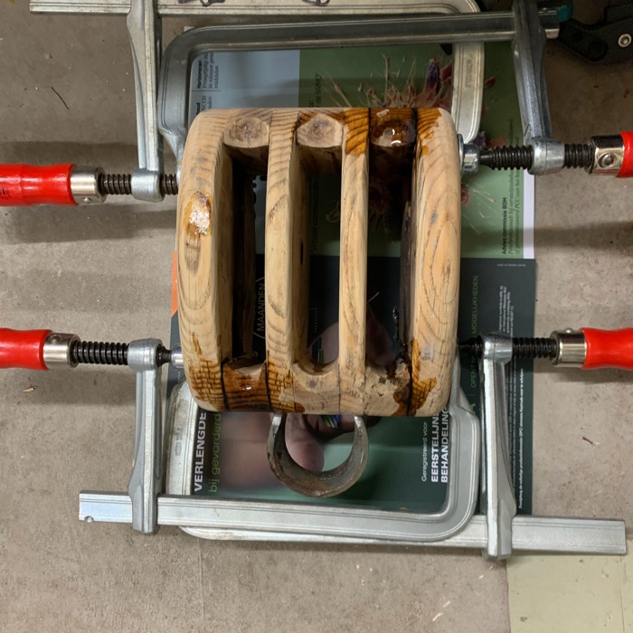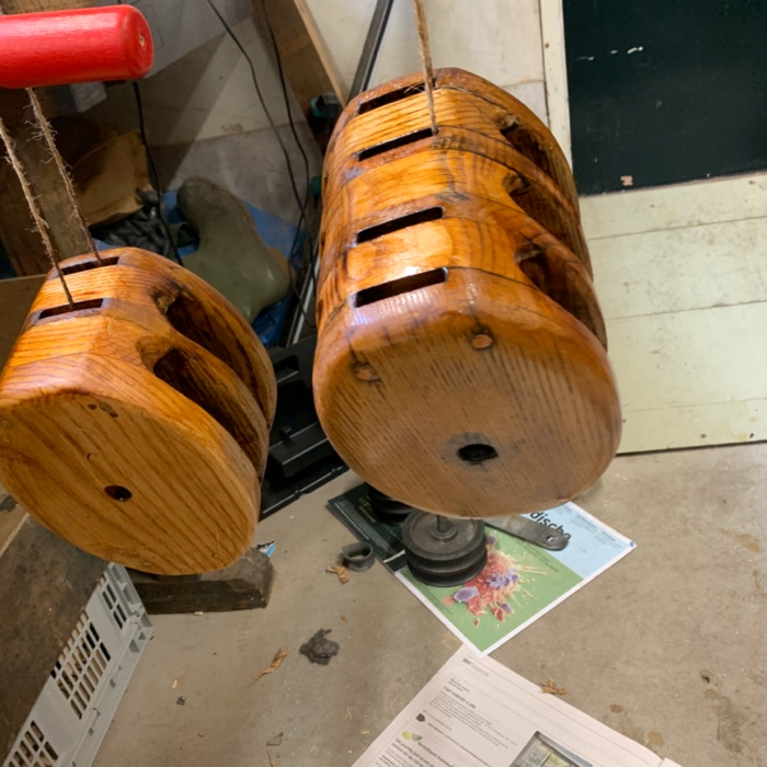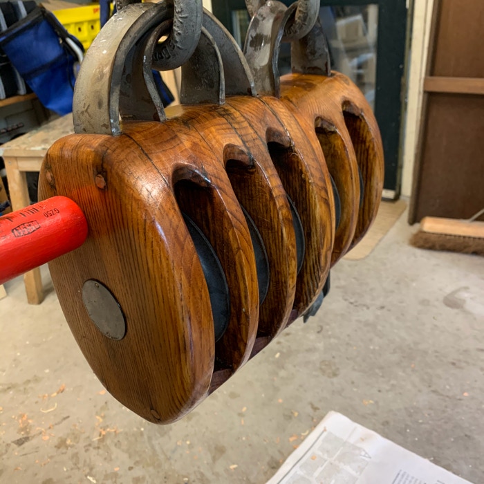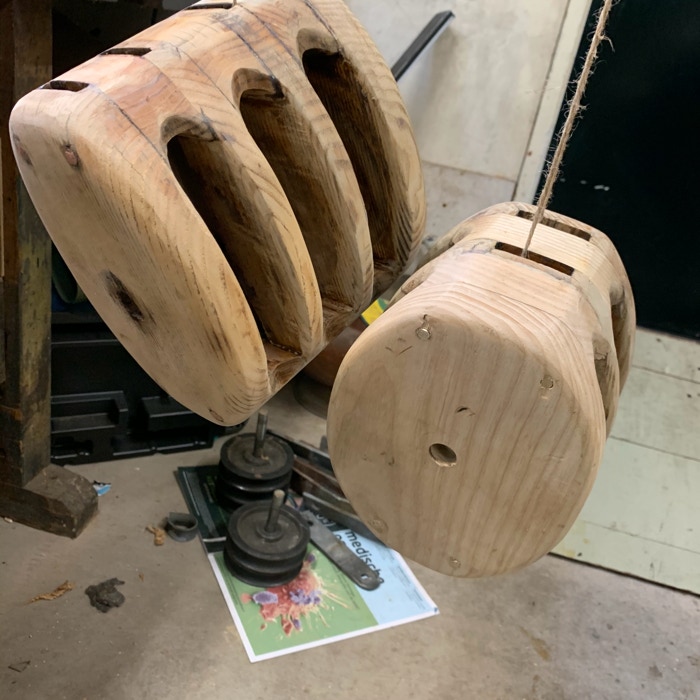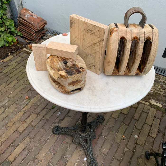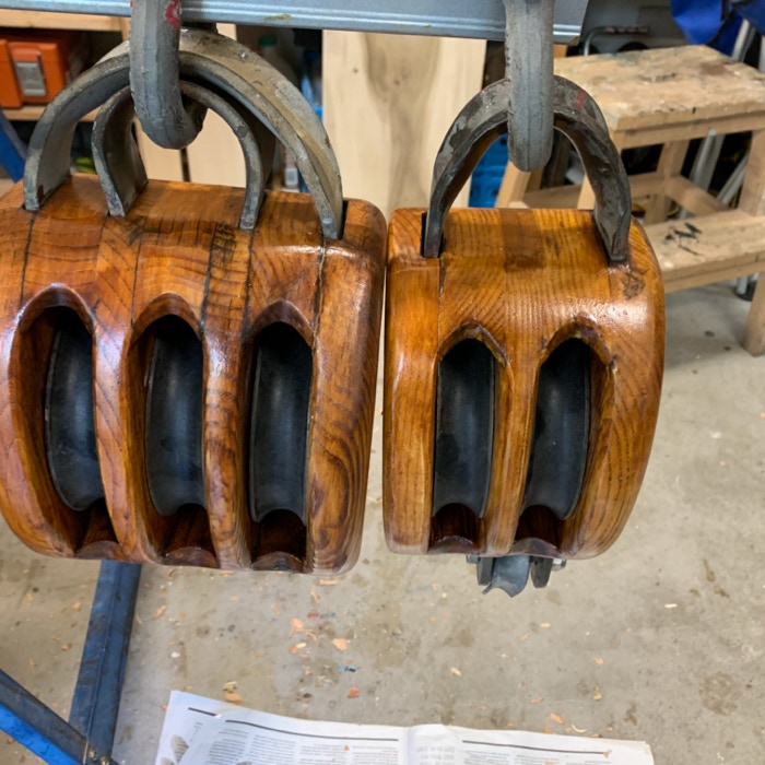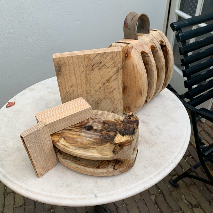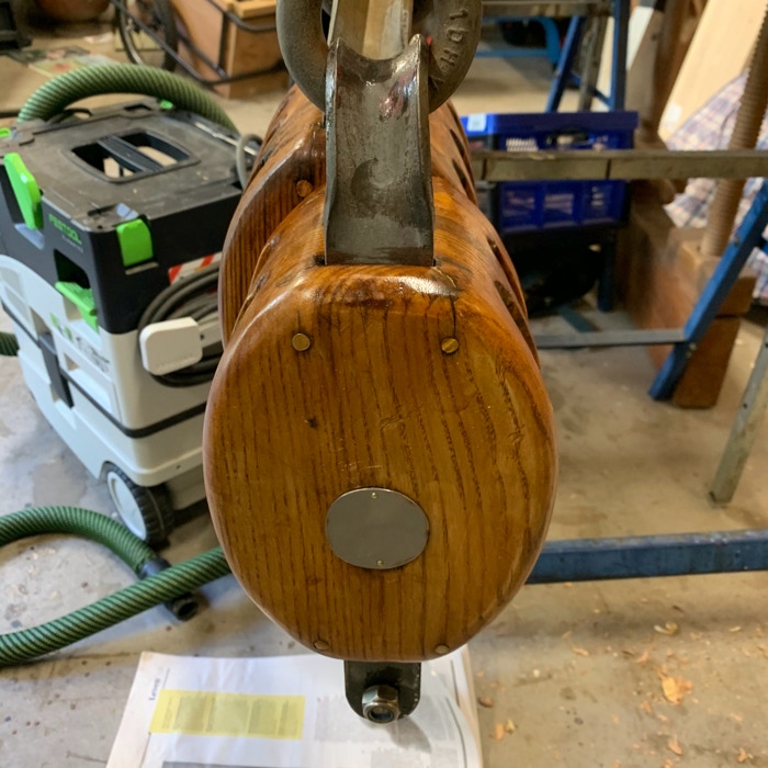 De Bounty is luxe, dwarsgetuigde, zeilschip welke ideaal is voor dag- en avond tochten. Dit zeilschip heeft naast de onderhoud vrijblokken ook gelukkig nog een aantal blokken van hout. Van de beide klokken waren de wangen aangetast. Een van de wangen was dermate aangetast dat hij moest worden vervangen met essenhout. De anderen kon minder ingrijpend hersteld worden.