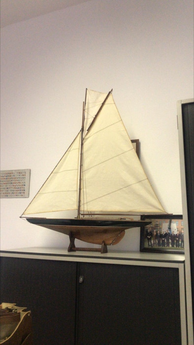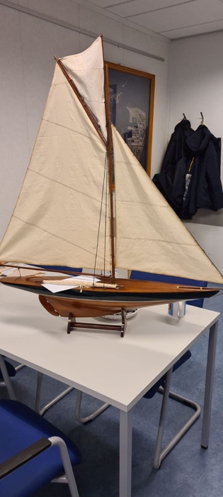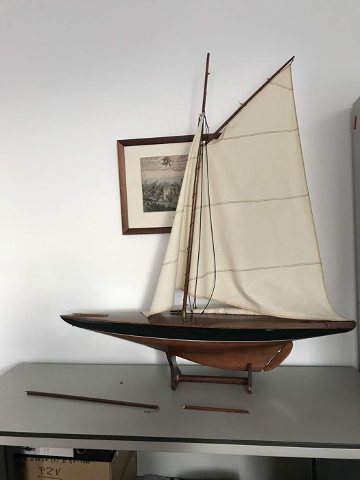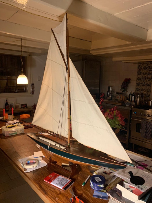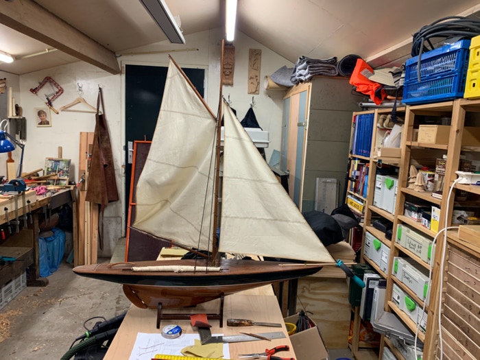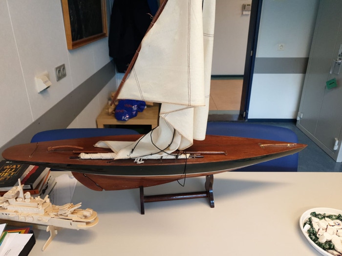De grootste uitdaging was de kleuring van het hout. Het lijkt op tropisch hout, maar het is vuren of grenen. Wat de toplaag is van het dek is niet duidelijk. Ik denk zelf aan vernis. Dit is er waarschijnlijk op gesprayd, vanwege de dikte. Met de kwast geeft dit namelijk een veel dikkere laag. Om de toplaag zo mooi mogelijk te maken heb ik ervoor gekozen om het te politoeren. Het was een tijdrovend proces om uit te proberen wat het beste en mooiste effect zou hebben. Daar dit model vaak wordt afgebeeld in een hoog aan de wind positie heb ik tevens een topzeil gemaakt, zoals bij de NY40.